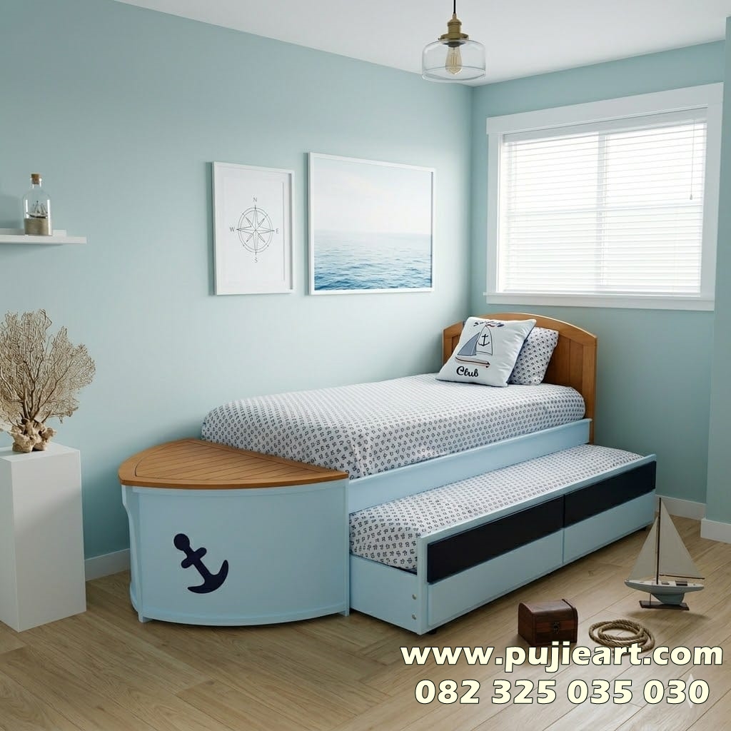 Tempat Tidur Anak Perempuan Bentuk Kapal Pinisi adalah pilihan terbaik untuk menghadirkan kamar tidur yang tidak hanya nyaman, tetapi juga penuh imajinasi dan keseruan bagi si kecil. Dirancang dengan detail menyerupai mobil balap atau kendaraan favorit anak, produk ini mampu menciptakan suasana tidur yang lebih menyenangkan sehingga anak semakin betah beristirahat. Bukan sekadar tempat tidur biasa, ranjang ini menjadi pusat perhatian di kamar dan dapat meningkatkan kreativitas serta semangat anak setiap harinya.