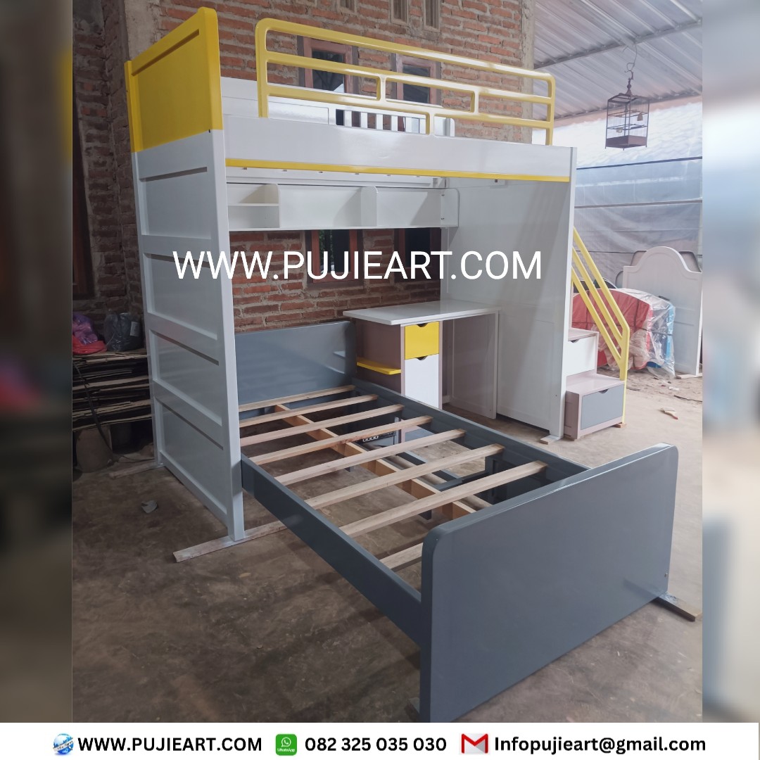 Ranjang Tingkat Multifungsi Bawah Meja Belajar Kayu Kokoh